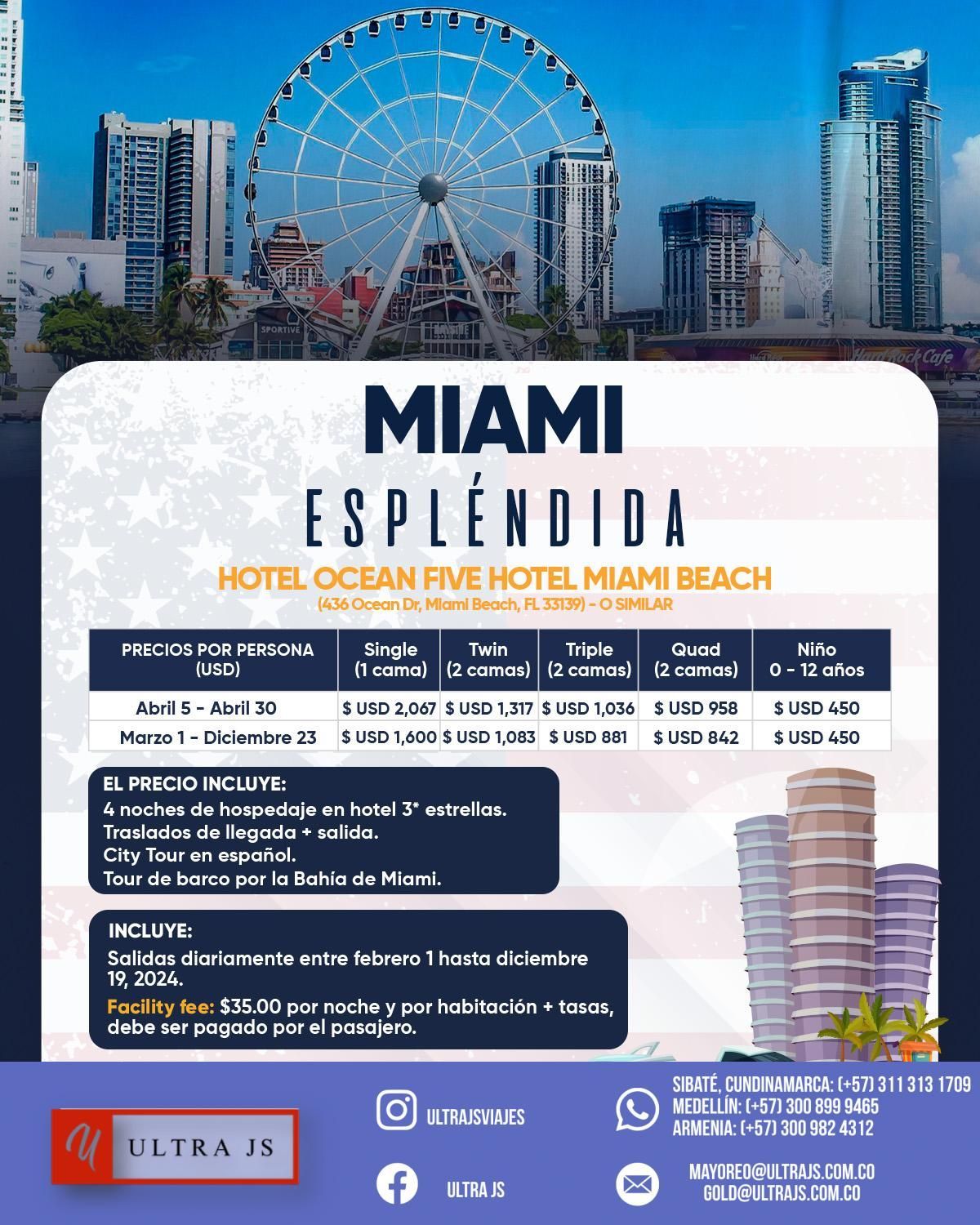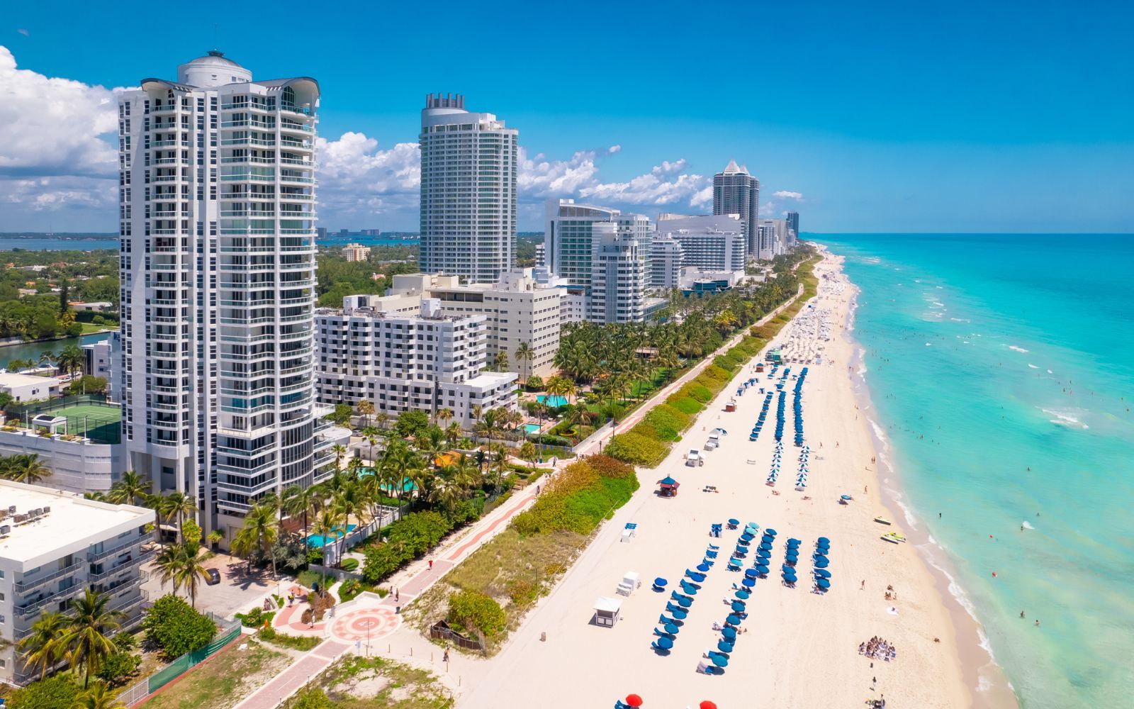 Miami es una ciudad internacional en el extremo sureste de Florida. La influencia cubana se refleja en los cafés y las tabaquerías de la Calle Ocho en la Pequeña Habana. En las islas de barrera, al otro lado de las aguas turquesa de Bahía Vizcaína, se encuentra Miami Beach, en la cual se ubica South Beach. Este glamoroso barrio es famoso por sus coloridos edificios art déco, la arena blanca, los hoteles junto al mar y los clubes vanguardistas.